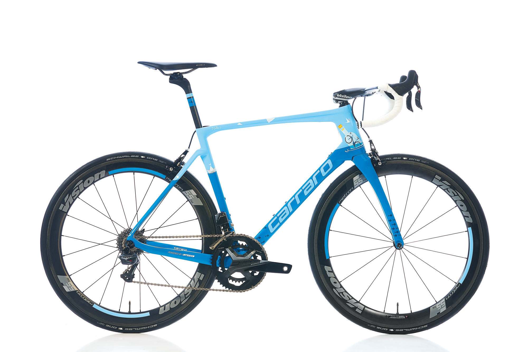"My second inspiration was the color palette in cycling races. For past two years, a noticeable blue dominance is visible in pro-peloton. Thus, we thought it would be a great idea to design something around it. As a team, we prepared a very precious gift for the Mediterranean and the professionals. We made Carraro BLUE as a dream machine. The Blue is a special bike which was equipped with the FSA's superior components and a Fi'zi:k saddle.