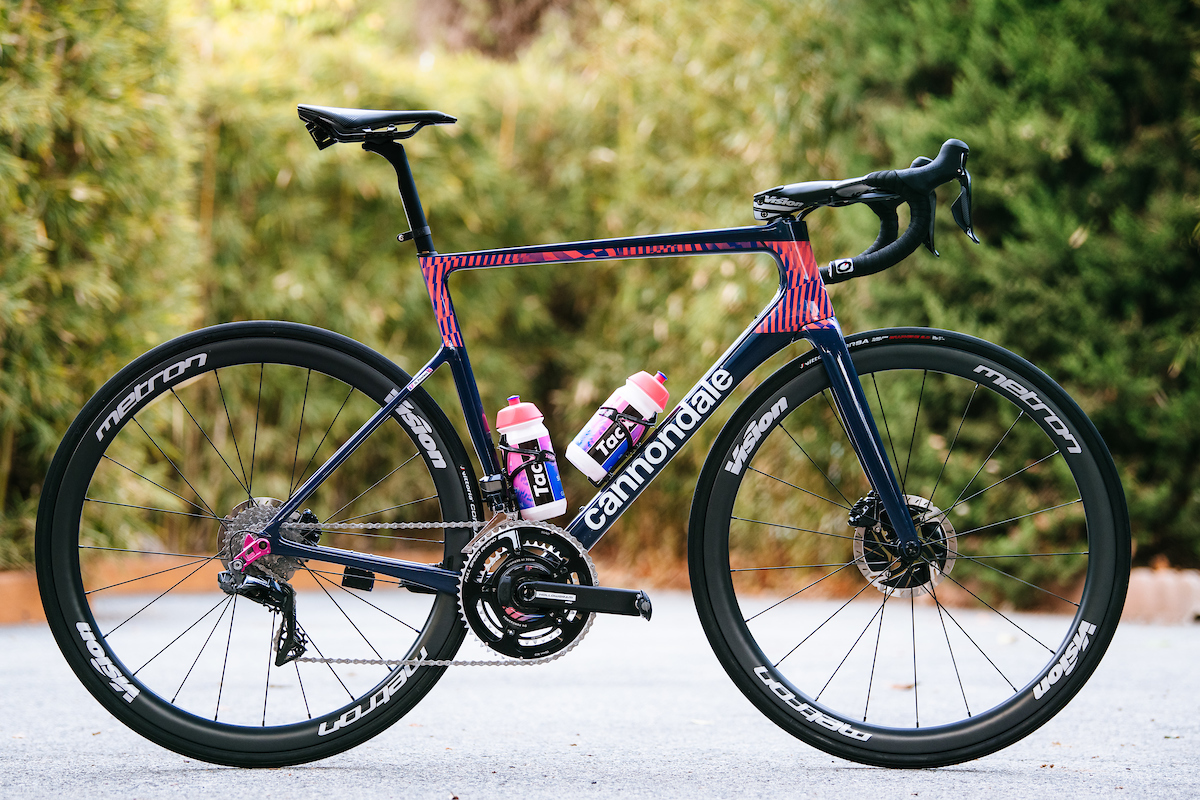 EF Pro Cycling is sticking to the same formula as last year with a bold blue and pink paint job emblazoning both its lightweight Cannondale SuperSix and aero SystemSix race bike options that the team can choose from.