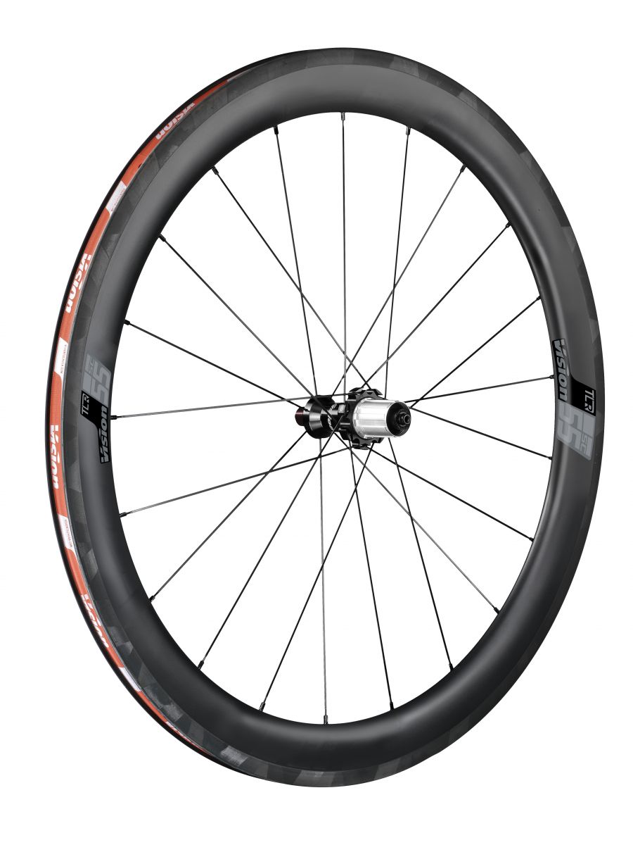 Vision SC is the newest range of light and versatile carbon racing wheels, available with a 40mm or 55mm rim depth, and in rim and disc brake formats. They have been developed using extensive wind tunnel testing and on the road with professional cyclists from EF Education First and Israel Cycling Academy, offering a great balance of performance and light weight at a competitive price.