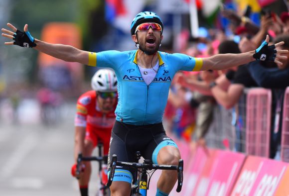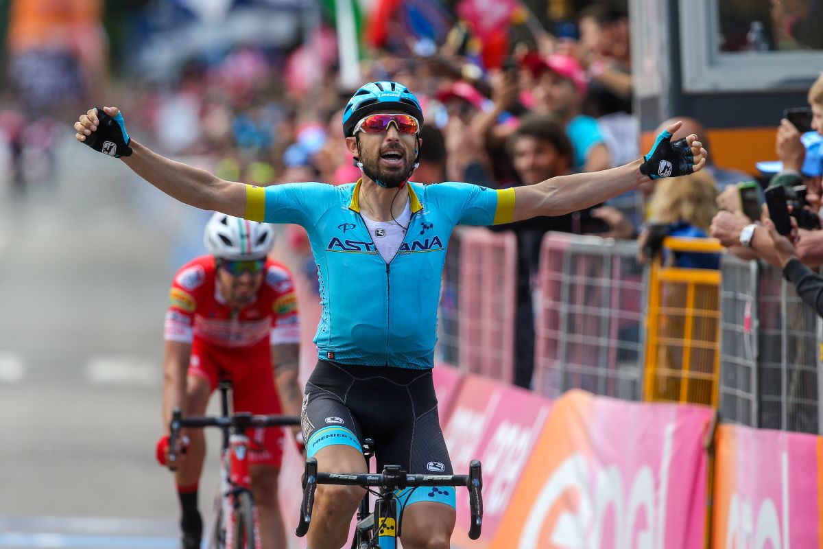 Team Astana rider Dario Cataldo took a heroic victory yesterday on the streets of Como at stage 15 of the Giro d’Italia. After a few days of illness, Cataldo was able to move himself in a breakaway together with the Italian rider Mattia Cattaneo. Spending all day long in the leading group, at the finish line in Como Dario outsprinted his breakaway companion, taking the most important win in his professional career.
