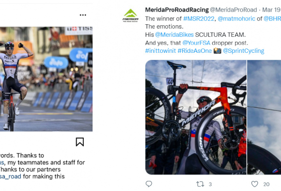 Matej proved to be a great champion – immediately off his bike and fresh off his victory, he publicly thanked, in addition to the technical partner Merida, also FSA as a gesture of gratitude for the development work started last winter between us.