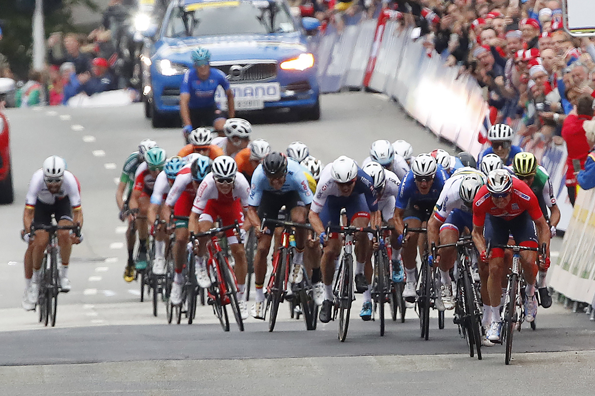 On a course characterised by many of the field, including Roglič himself, swapping their TT bike for their road bike before the final climb, Roglič actually held the lead with only five riders left out on the Norwegian course. But Dumoulin showed the form that won him the Giro. Roglič also helped his Vision-FSA-using NL Lotto-Jumbo team finish seventh in the team time trial earlier in the first weekend of the championships.