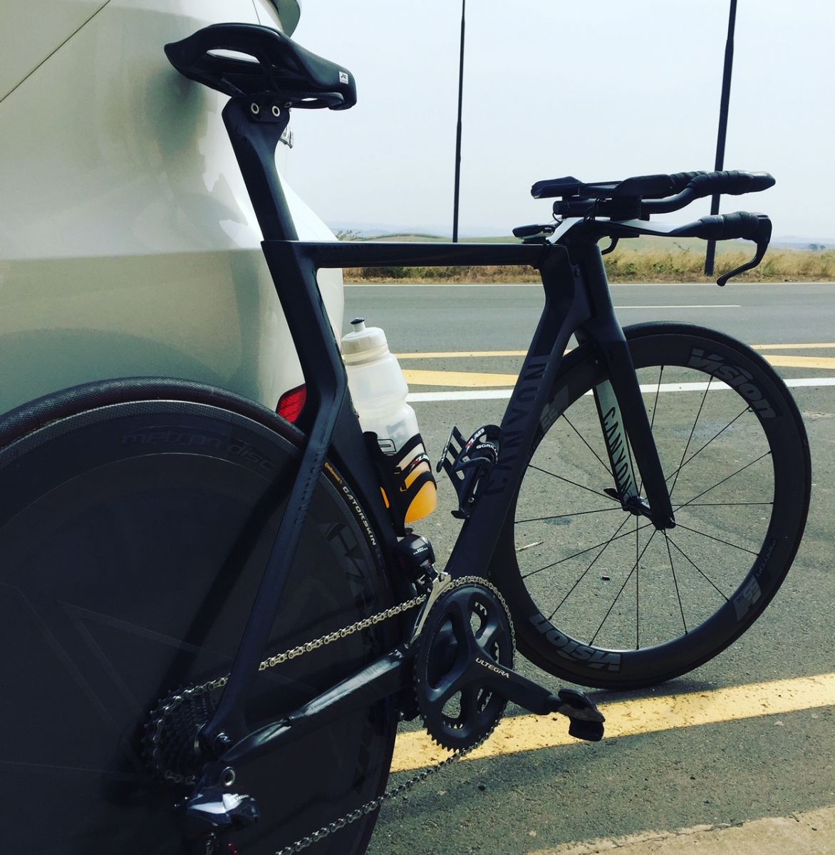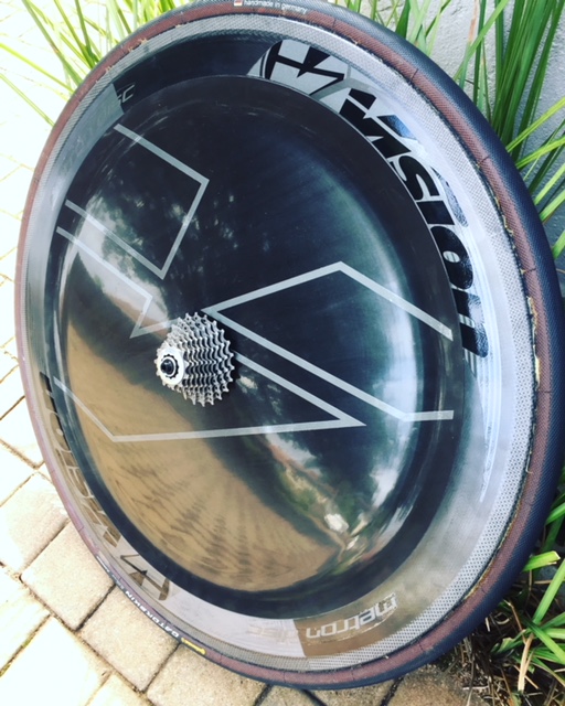 I managed to get in a 60km ride this am with my race wheels on in conditions that saw a strong wind come through out on the training course. In 1 direction, I was battling to go over 20km/h while in the other direction, I was hitting 55-60kmh no problem. A disc wheel in cross winds can be tricky but funnily enough, with a 55 on the front, it's totally ride-able and I felt in control even on the downhills where I was free-wheeling towards 70km/h. The only time I needed to be careful was when I came out from next to a building. The sudden gust of air from the side caused me to go off the TT bars and hold the drops to stabilise the bike - were this race day, I would be a little more careful on certain sections of the bike course where such conditions might arise